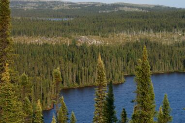 The boreal forest, covering much of Canada and Alaska, and the treeless shrublands to the north of the forest region,...