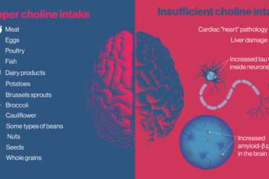 Choline, an essential nutrient produced in small amounts in the liver and found in foods including eggs, broccoli, beans, meat...