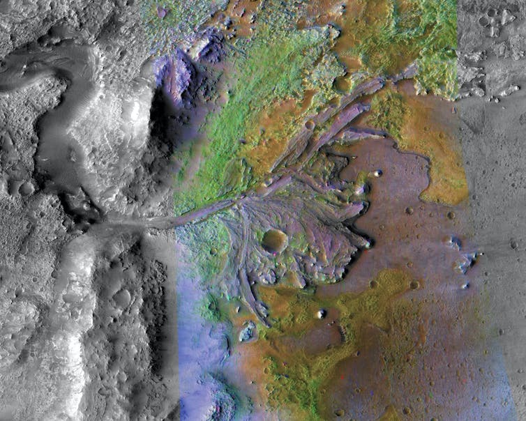 There was a three- or four-year process that involved the entire global community of Mars and planetary science researchers to figure out where to send this rover. We chose a crater called Jezero. Jezero has a beautiful river delta in it, preserved from an ancient river that flowed down into that crater and deposited sediments. This is kind of like the delta at the end of the Mississippi River in Louisiana which is depositing sediments very gently into the Gulf of Mexico.