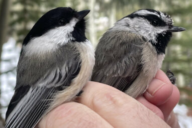 Hybrids of two common North American songbirds, the black-capped and mountain chickadee, are more likely to be found in places...